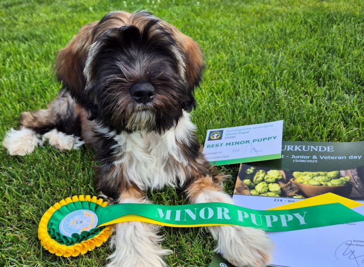 Om Vailali Fidelio, heute genau vier Monate, hatte gestern bei einer reinen Junghunde- und Veteranen-Show in Aalst (Belgien) seinen ersten Showauftritt in der Babyklasse.