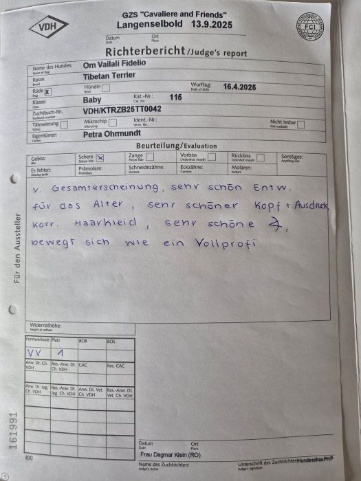 Herzlichen Dank an dieser Stelle an unsere großartige Richterin Dagmar Klein (RO), die liebevoll mit den Hunden umging und einzigartige Berichte schrieb.