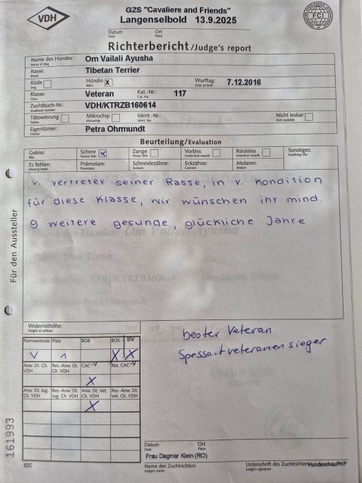 Beide Tage V1 und bester Veteran, dazu tolle Richterberichte und am Samstag war sie im Ehrenring unter den TOP 6 von fast 60 Veteranen.