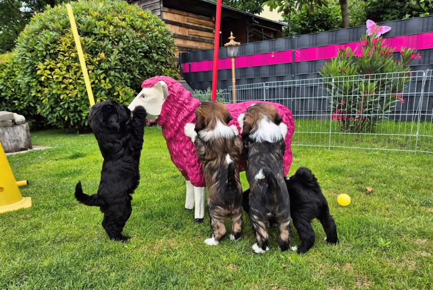 Trotzdem gab es immer wieder Regenlücken und die Zwerge konnten ein bisschen im nassen Gras toben. Da die meisten Spielsachen im trockenen Gartenhaus lagen, haben die kleinen Om Vailalis sich ein neues Spiel ausgedacht: