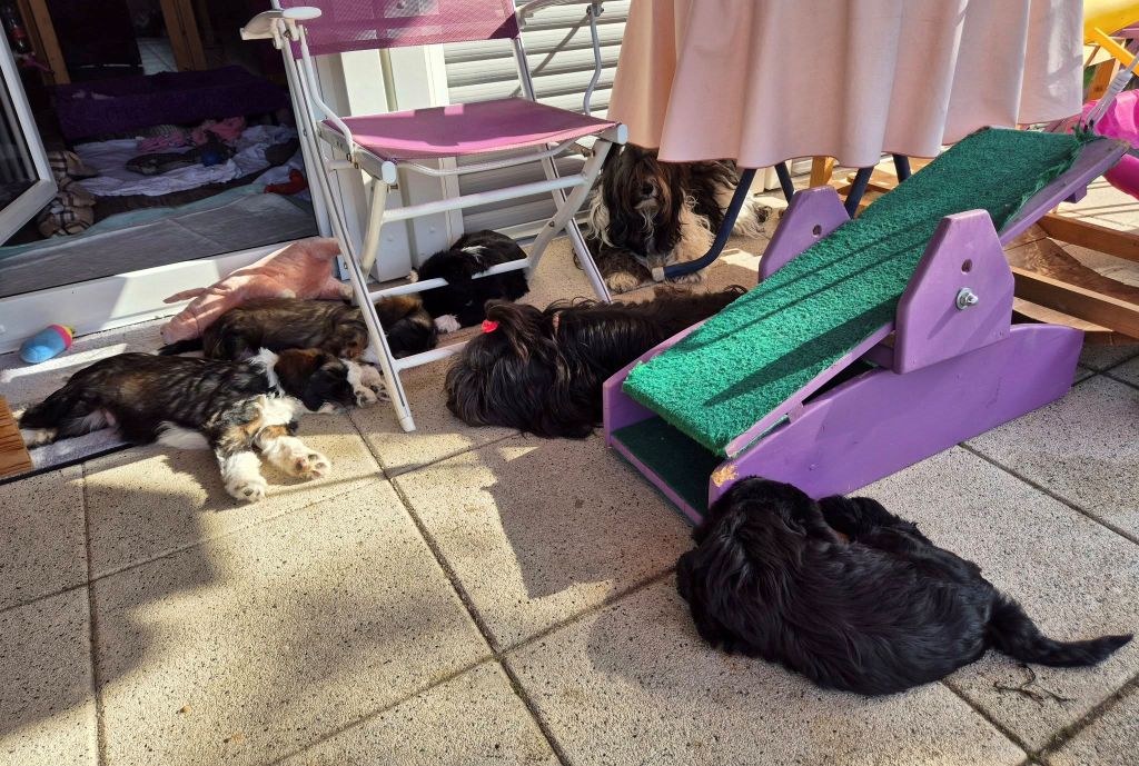 Da ist es, unser obligatorisches Gruppenbild mit 9 Wochen. Es war eine äußerst schwierige Aufgabe für Sabine bei 30 Grad in der Sonne... Die Babys waren ganz schön kaputt, haben dann aber doch brav mitgemacht!