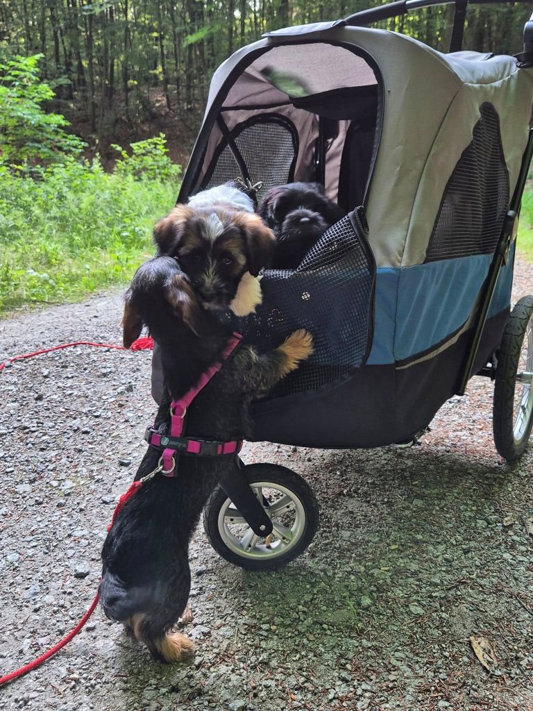 Bei diesen Temperaturen fahren wir schon morgens um 5 in den Wald. Der Buggy ist immer dabei, damit die Zwerge zwischendurch wieder zur Ruhe kommen und neue Kraft tanken können.